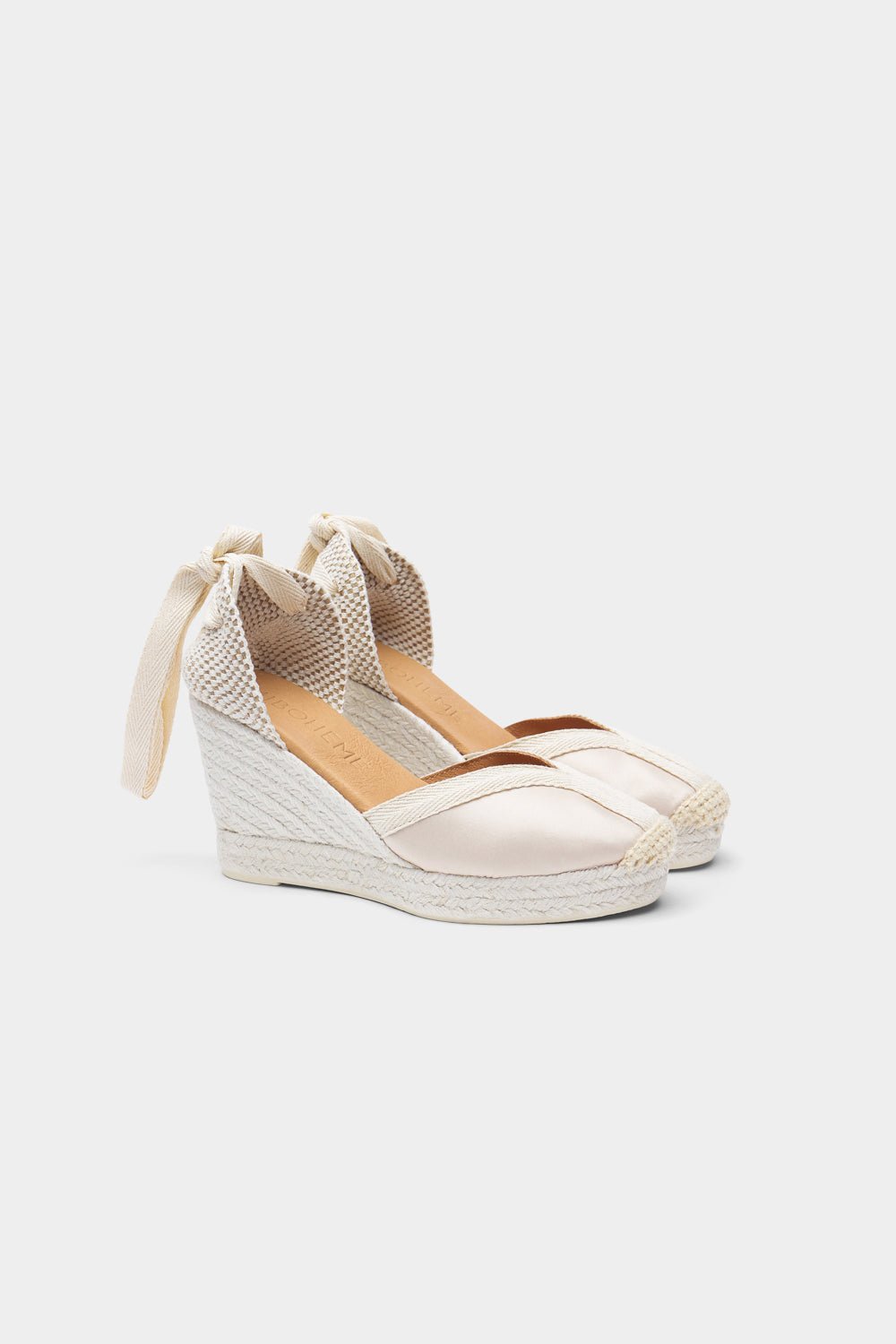 Nuestras cuñas son nuestra mayor seña de identidad. Elaboradas en raso de primera calidad, hechas una a una a mano en España por nuestros artesanos, son el complemento perfecto para el verano o para el día de tu boda.